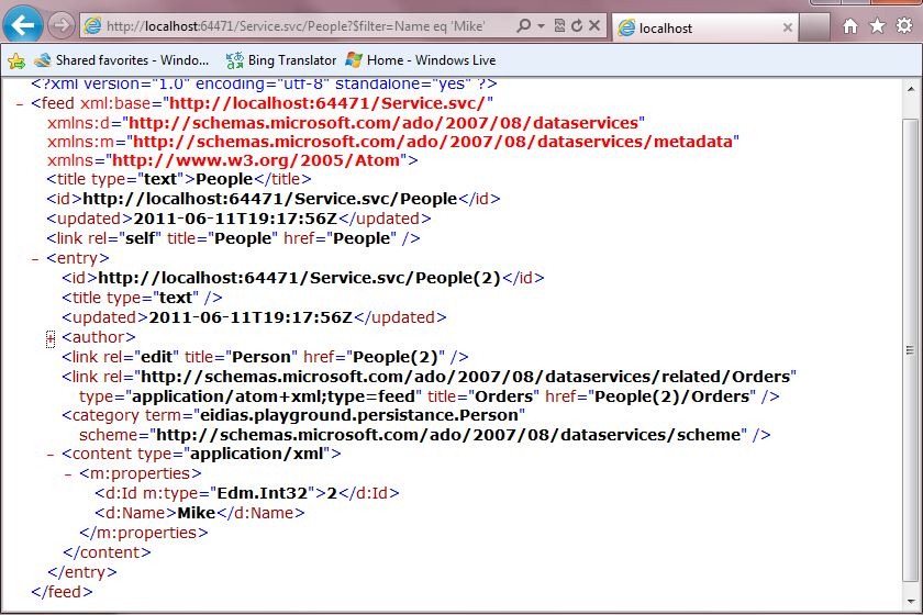 [service host]/Service.svc/People?$filter=Name eq 'Mike'