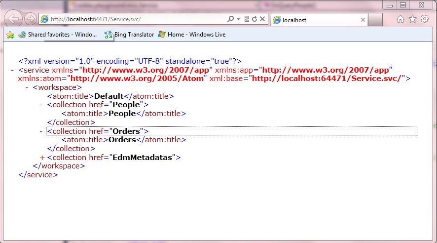 Windows Phone Developer Tools 7.0 are not yet compatible with Data services so it does not provide a method for automatically adding a service reference in Visual Studio. More over its functionality is a bit limited. For example we have no support for Linq syntax, we have to generate raw url’s and query the service with use of them. There are no entity sets properties generated in the proxy context class.