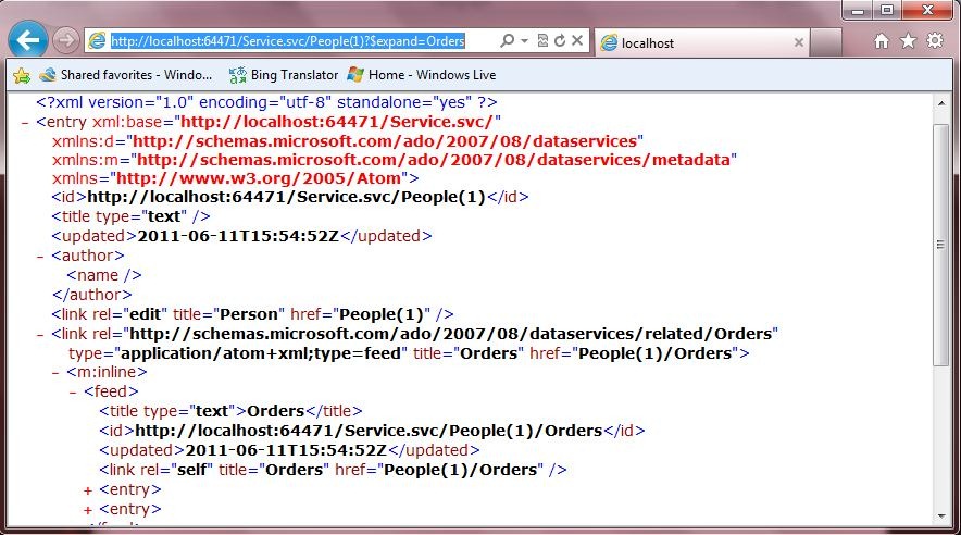 at least one property that returns an entity set that is an IQueryable collection of entity types. This class must also implement the IUpdateable interface to enable updates to be made to entity resources. In our case this is an EF Code First DbContext class, which exposes two IQueryable properties: People and Orders.