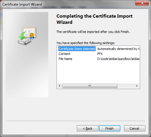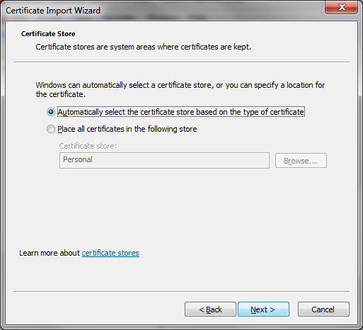 - Select “Automatically select the certificate store based on the type of certificate” and press “Next”
