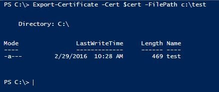 Note that as a dns name we must provide a fully qualified domain name. If we have a certificate as a file we can easilly import it using Import-Certificate instead of using the self-signed one. After that we need to export the certificate to a file so we can later on import it on a local computer.