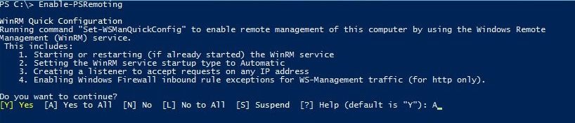 What we first need to do is to enable powershell remoting. Note that in Windows Server 2012R2 this is already done by default.