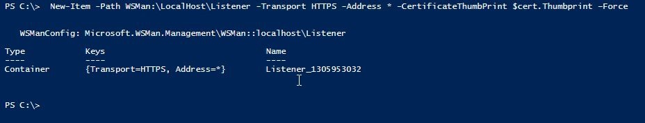 Next we need to add a powershell listener on HTTPS providing the certificate we’ve just created