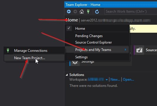 Now it is time to create the team project. To do that we have to connect to TFS with Visual Studio. So start Visual Studio 2015 and add a Team Server Connection