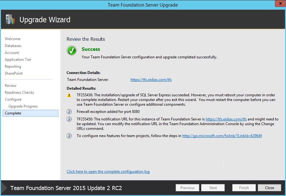 TFS 2015 – Upgrade from TFS 2010 on new hardware