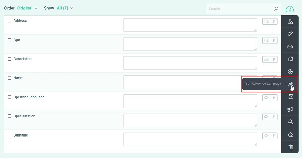 Now we want to use the automatic translation feature. Go to the language you want the translation to be done and select Automatic Translation from the right side toolbar.