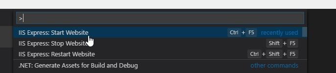 I’m using the Visual Studio Code (VSC) for development of the VSTS extension, so all examples will refer to this IDE, but the most important here is the idea, not the tool. So assuming we have our simple extension, created by calling the command yo team-services-extension (as descripbed in previous post) in D:\research\my-job we need open in in VSC. In order to run it on IIS Expres we need a special VSC extension. Go to market place and install IIS Express. Now press Ctrl + Shift + P and choose IIS Express: Start Website