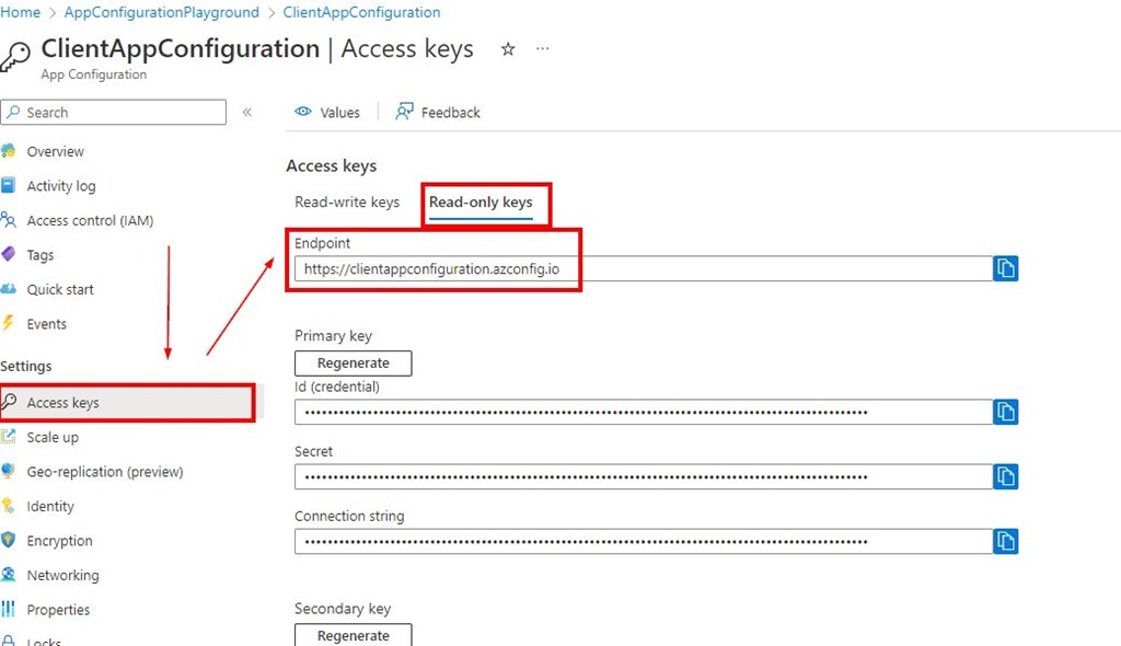 As you can see there are also different ways of connecting to App Configuration. You can also use the connection string, but then you have to make sure you keep this connection string securelly (in Azure Key Vault for instance), as it contains the connection secret. This is generally not recommended solution in most cases.