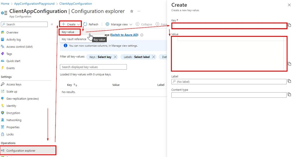 To add configuration values we use Configuration explorer in the portal as on the following screen